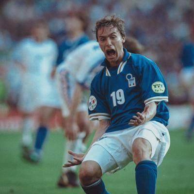 意大利这面另外一个值得一提就是小基耶萨,基耶萨父子欧洲杯进球(1996年6月14日对捷克)间隔25年12天(9144天)。